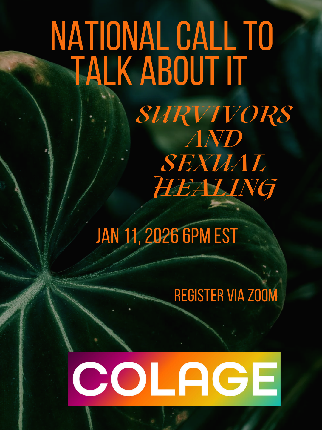 The news is difficult to avoid these days. Sexual harassment, sexual assault, child sexual abuse and human trafficking are issues that dominate the media landscape. This has created a cultural atmosphere where survivors feel silenced, intimidated, or as if their trauma simply doesn’t count. How do we hold the complications of this reality? As survivors, how do we survive trauma in our bodies? As allies, how do we work to make our friend groups and communities safer for all people? Join COLAGE for a National Call To Talk About It facilitated by Asha Leong, Strategic Partnerships Manager. This is a space for everyone, both survivors and allies, to discuss child sexual abuse, sexual assault, survivorship, mental health and healing practices. You can register for the call here.